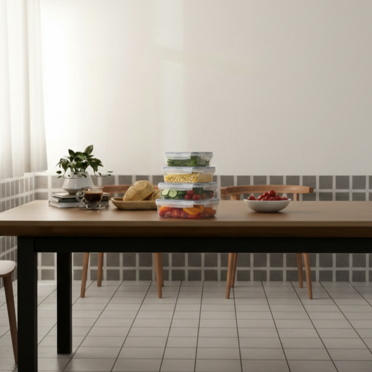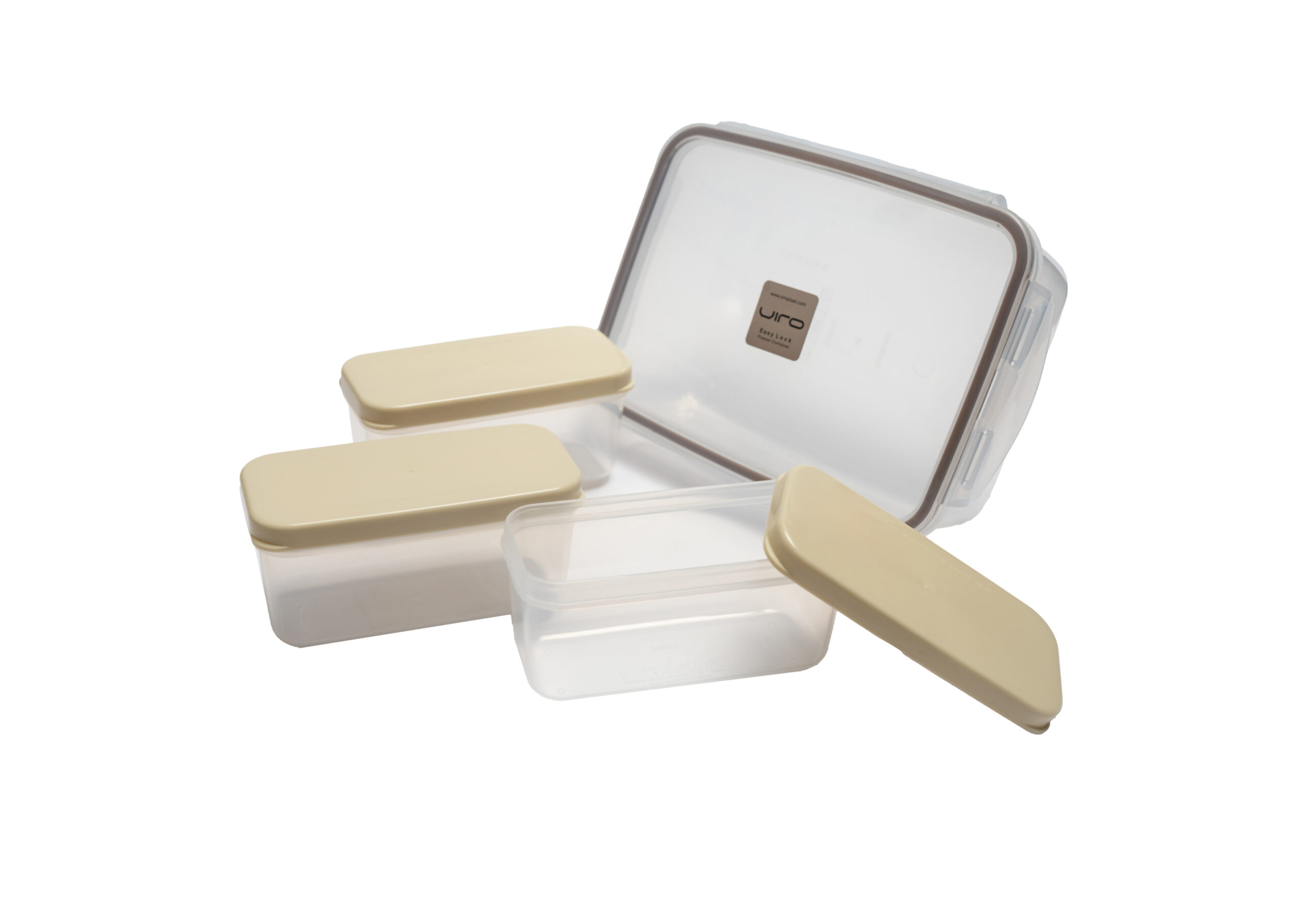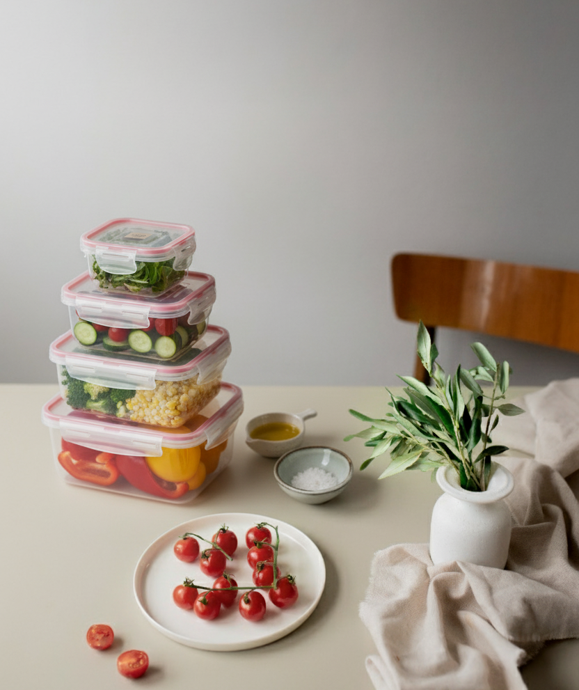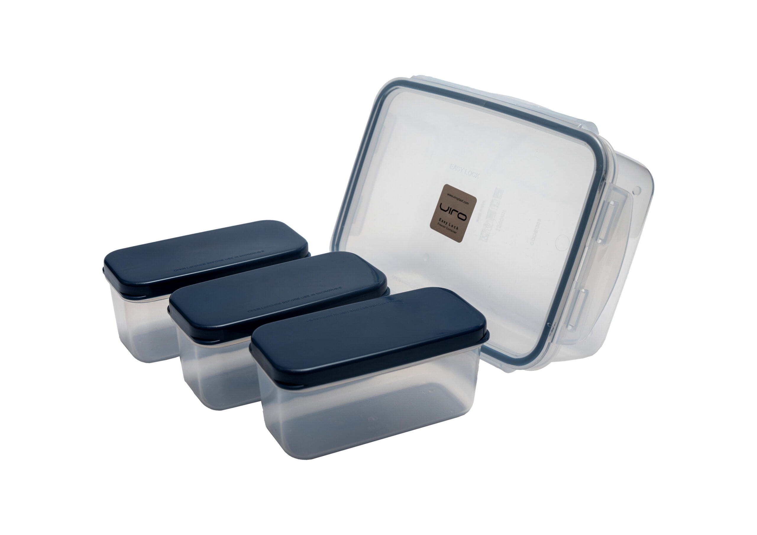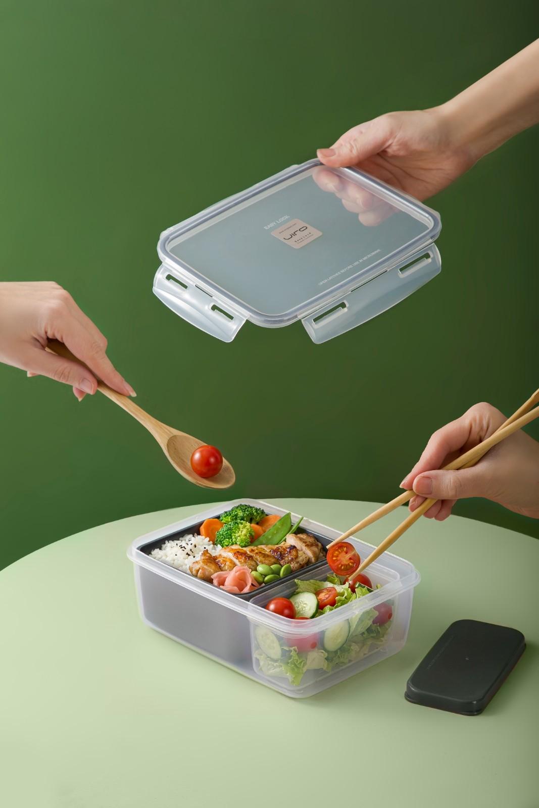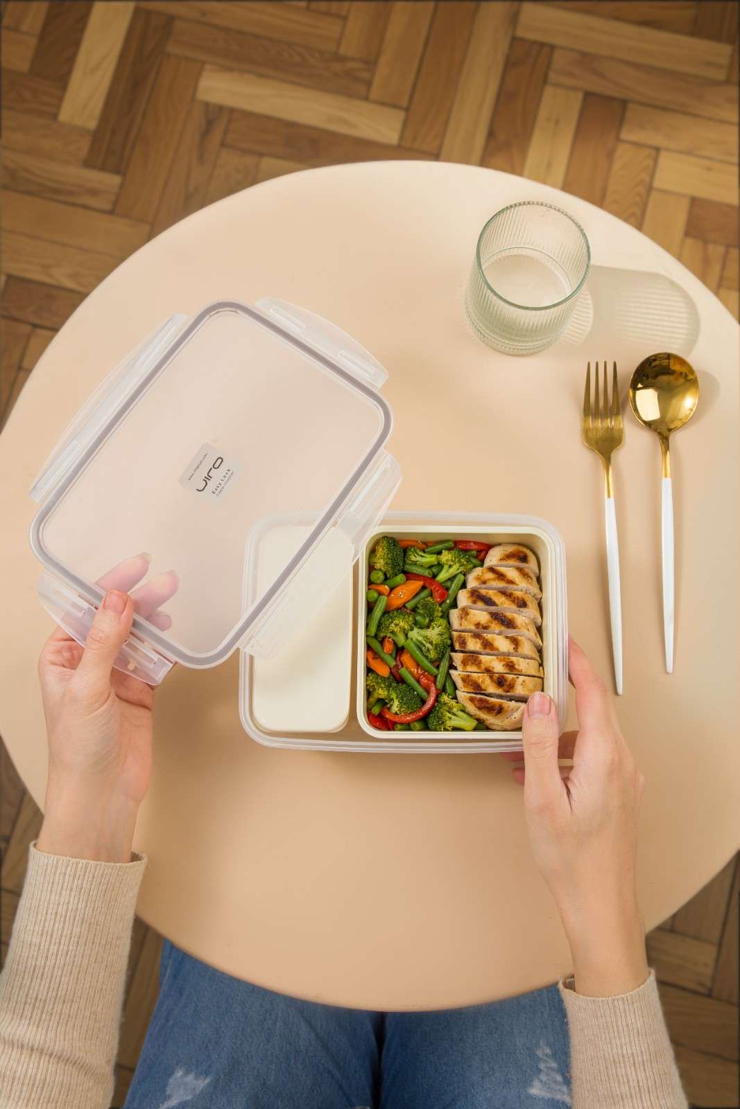 طراحی سه خانه با سه نگهدارنده داخلی برای نگهداری جداگانه مواد غذایی.